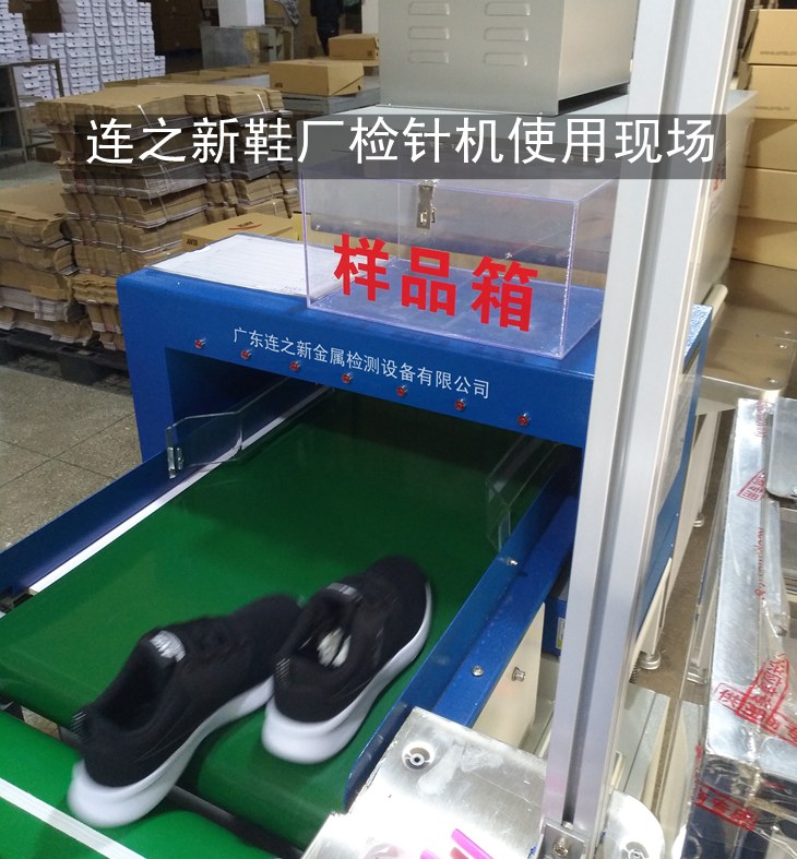 连之新为安踏鞋业加工商福建莆田力奴鞋业非标定制的多台平行对接流水线检针机使用案例现场。将检针机衔接到到鞋厂流水线后端使用,极大的提高了鞋厂流水线自动化生产水平。欢迎鞋业企业上门选购鞋厂检针机。