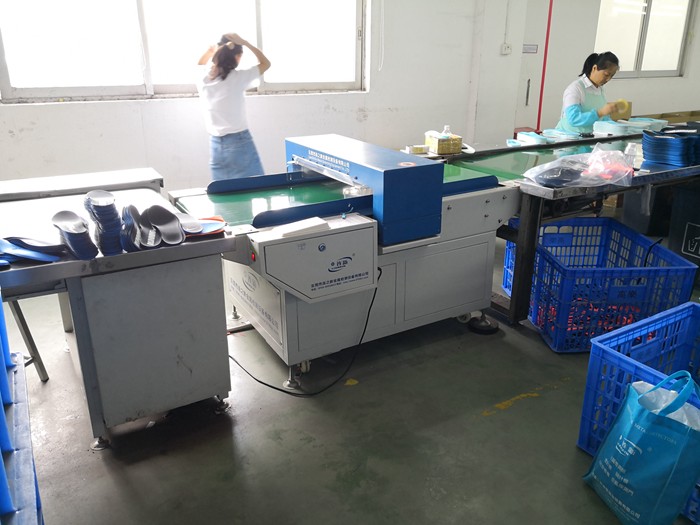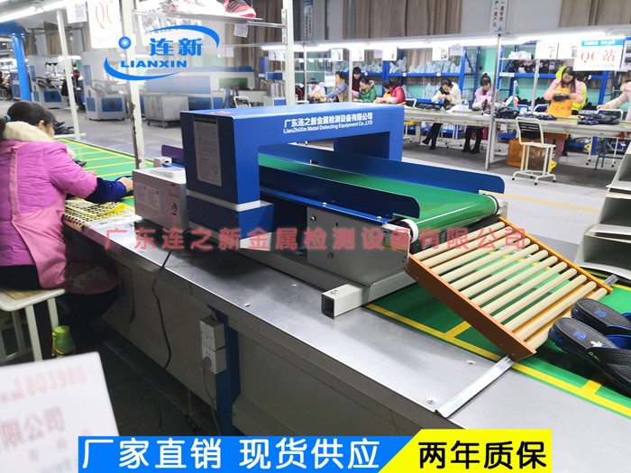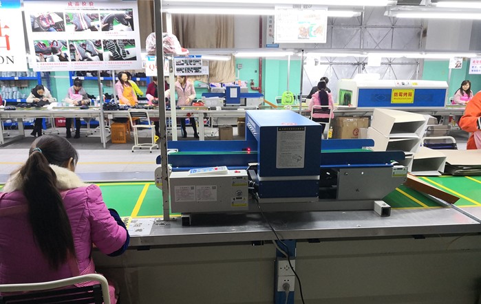 莆田鞋厂流水线上检针机使用现场: